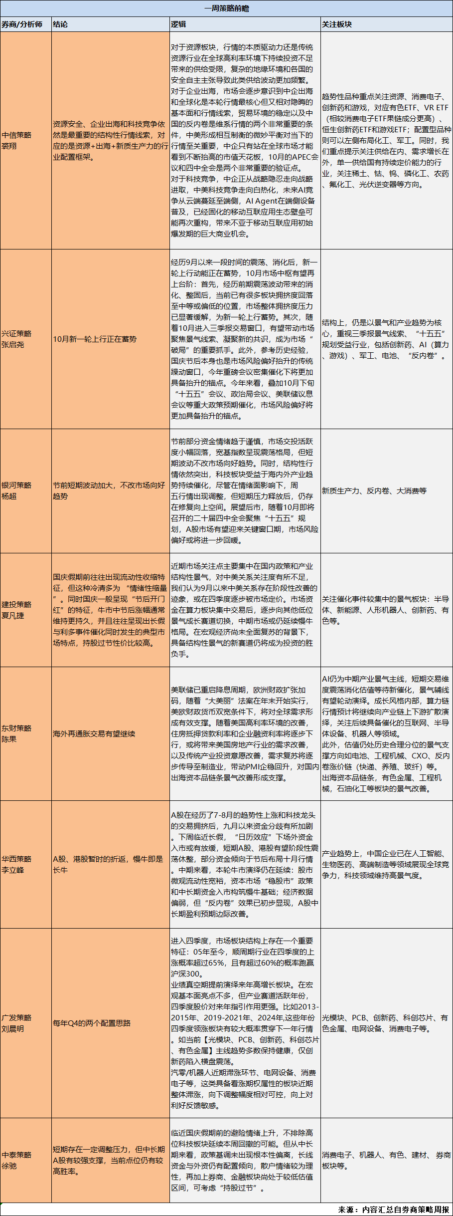 本周各家券商策略普遍聊到了持股/持币过节,以及10月的日历效应等话题。