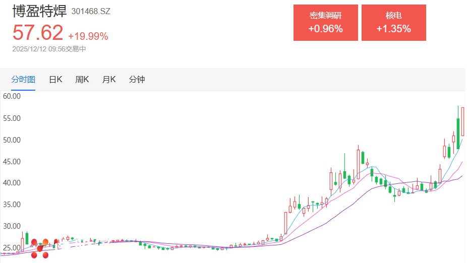 12月12日早盘,博盈特焊20%封板带动燃气轮机概念走强,联德股份、东方电气、应流股份、万泽股份等纷纷跟涨。