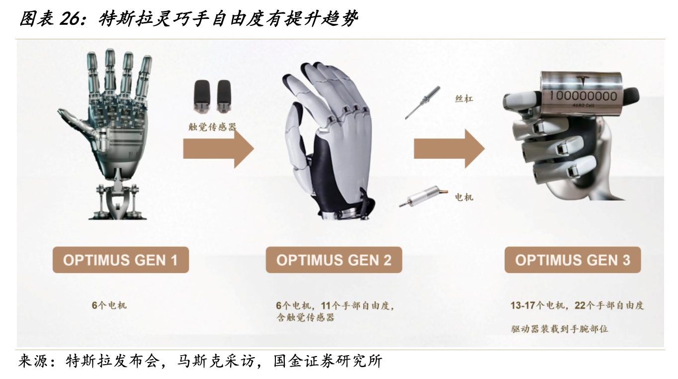 1)特斯拉Gen3灵巧手迎重大升级,自由度翻倍带动零部件需求激增