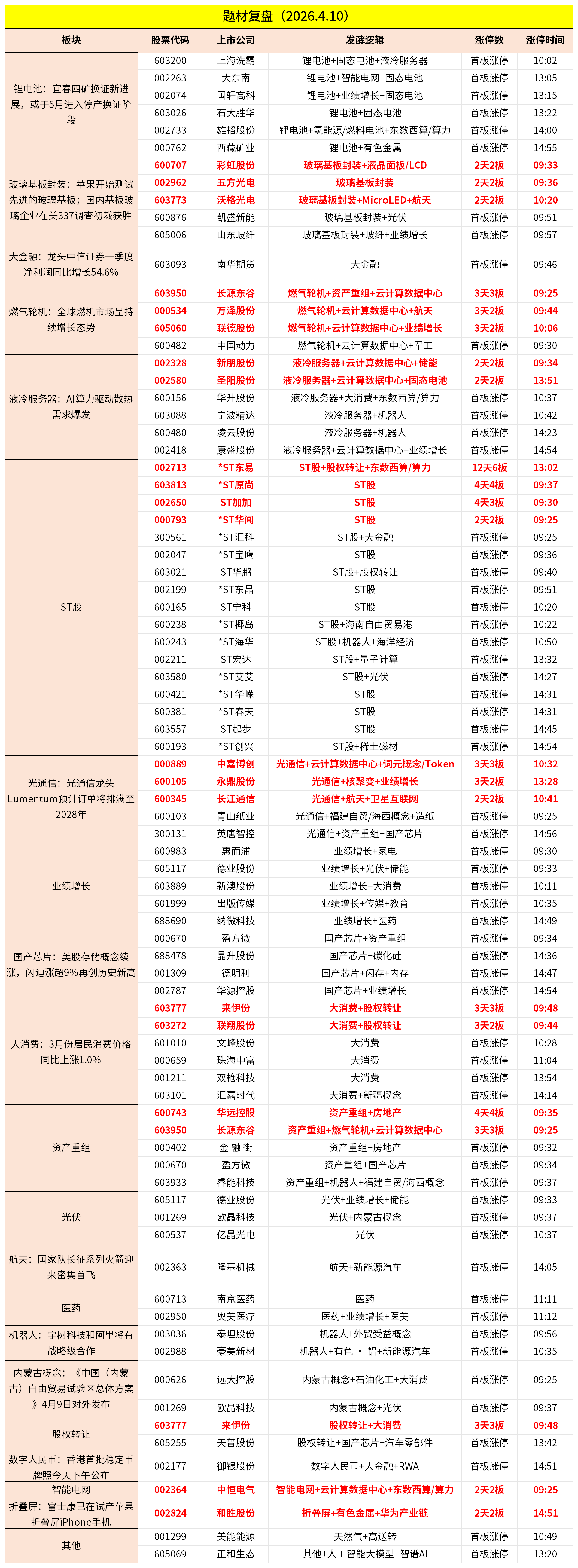 12、房地产 | 据中证报报道,2026年以来,一线城市二手房市场呈现强势复苏态势。上海4月11日二手房单日网签1632套,创5年来新高。"沪七条"新政后3月成交量创近5年新高。今年各地累计出台房地产政策约160条,其中公积金政策超60条,优化频次居首位。