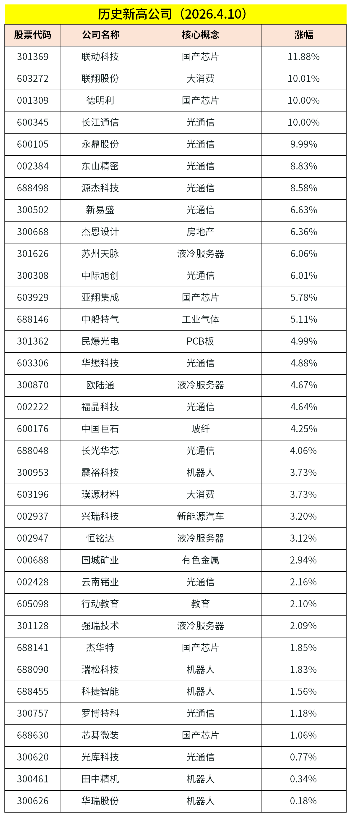 半导体强势不减,再创新高,力撑纳指收涨0.35%。芯片制造商领涨半导体板块,博通涨4.7%,英伟达涨2.6%。英特尔涨1%,全周涨24%、创2000年1月以来最佳周表现。台积电一季度营收突破万亿大关,3月单月同比激增45%,涨1.4%;CoreWeave飙升10.9%。在各大银行公布财报之前,金融股承压。